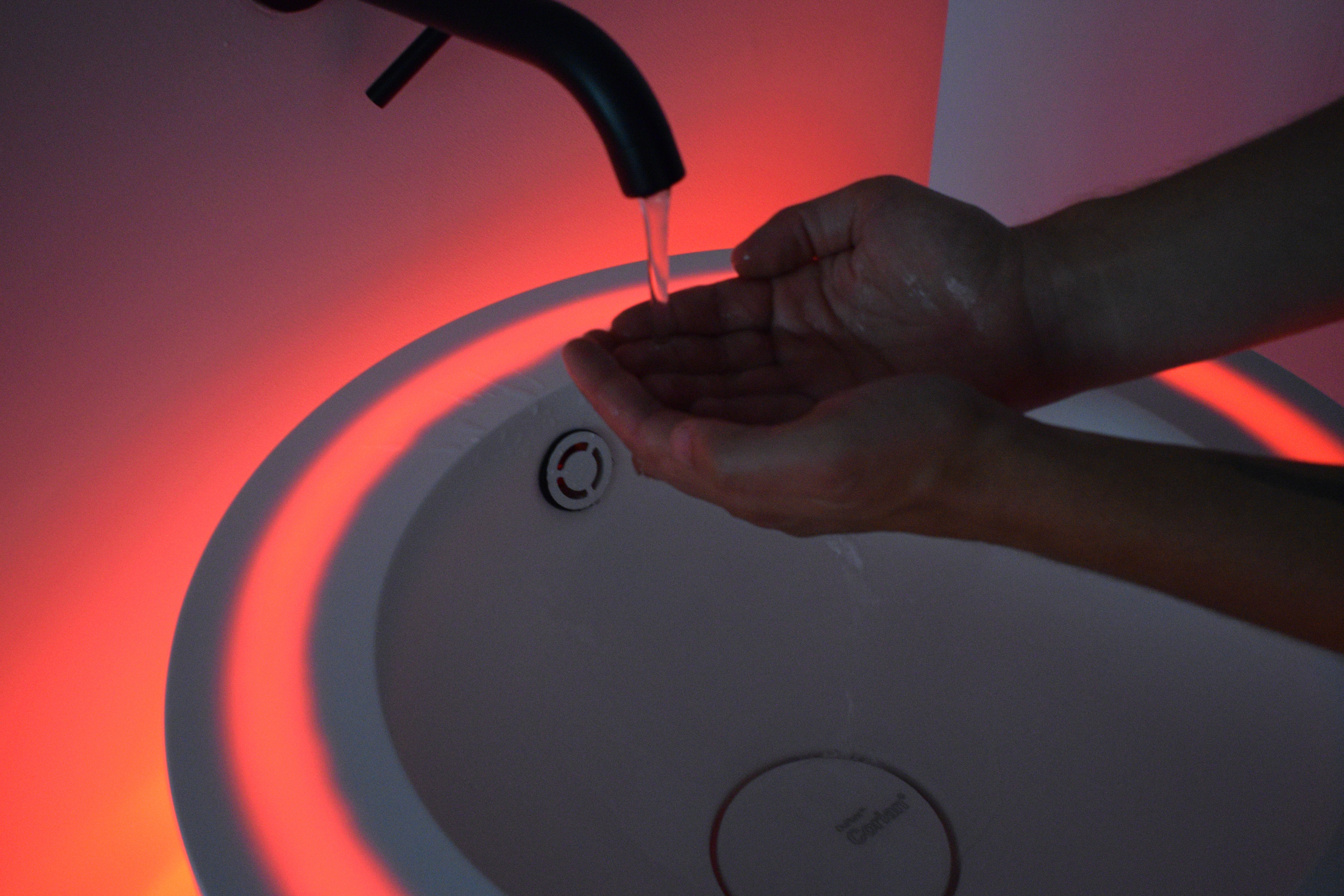 Second prize: "Faucepy" by Valentina Masarella (Argentina, University of Buenos Aires). A faucet that integrates aromatherapy and light therapy for both public and domestic bathrooms.