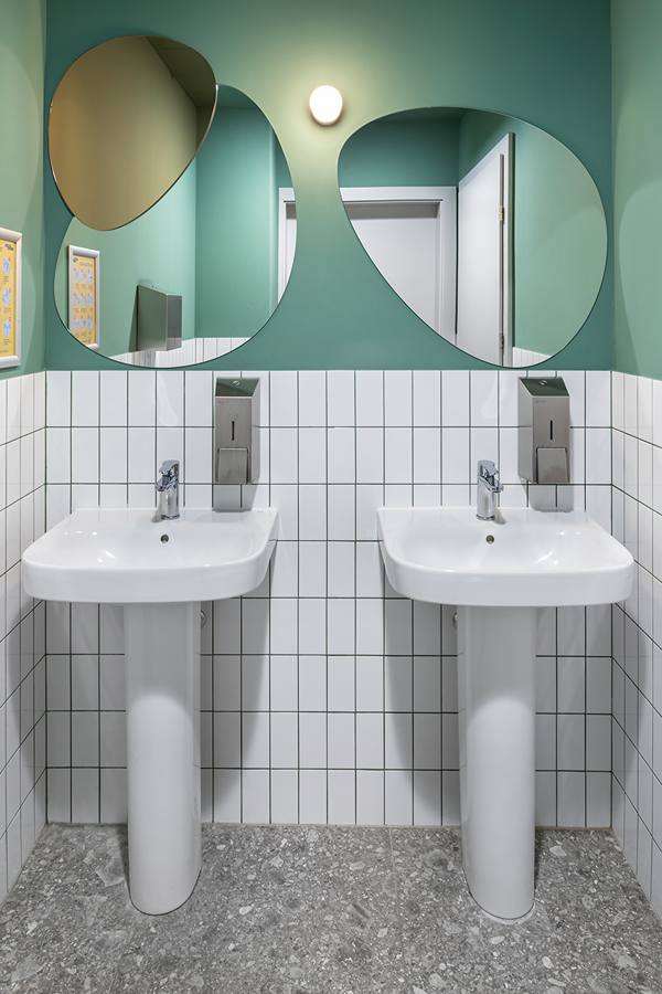 As with the entire building, it was crucial that the bathrooms deliver a sense of comfort that’s universal, as their users may come from different worlds,” explains Q2 Studio director Maciej Janczyk.