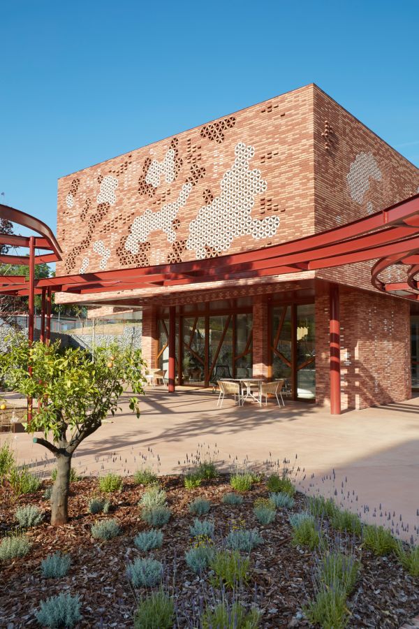 Responding to the need for privacy, the flexible floor plan allows for several smaller rooms to be created through sliding doors, each room with views of the garden and the adjacent modernist hospital building. The façade incorporates ceramic latticework offering a sense of transparency.