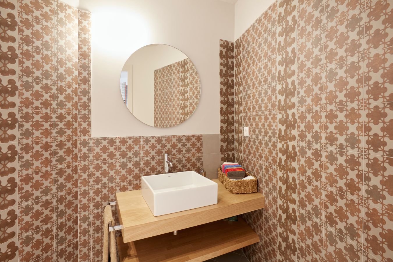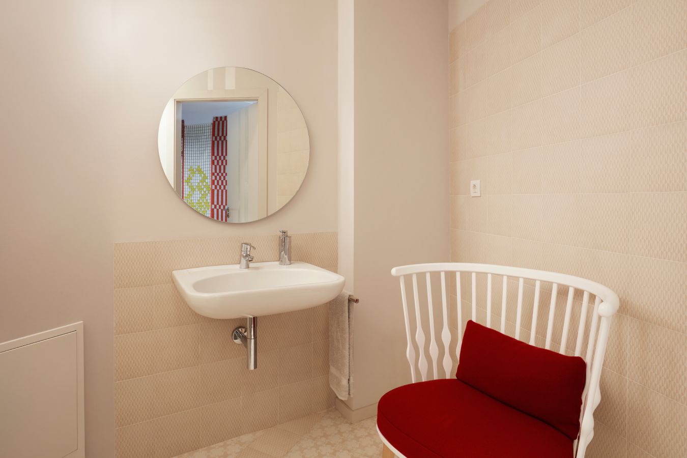The bathroom on the first-floor features Roca fixtures selected from the Access and Victoria Pro collections, and were chosen for their ergonomic, versatile and sophisticated solutions. Among the fixtures featured are a folding grab bar with built-in toilet roll holder, the Victoria Pro faucet with a specially crafted handle for individuals with reduced mobility, and the Access wall-hung basin.