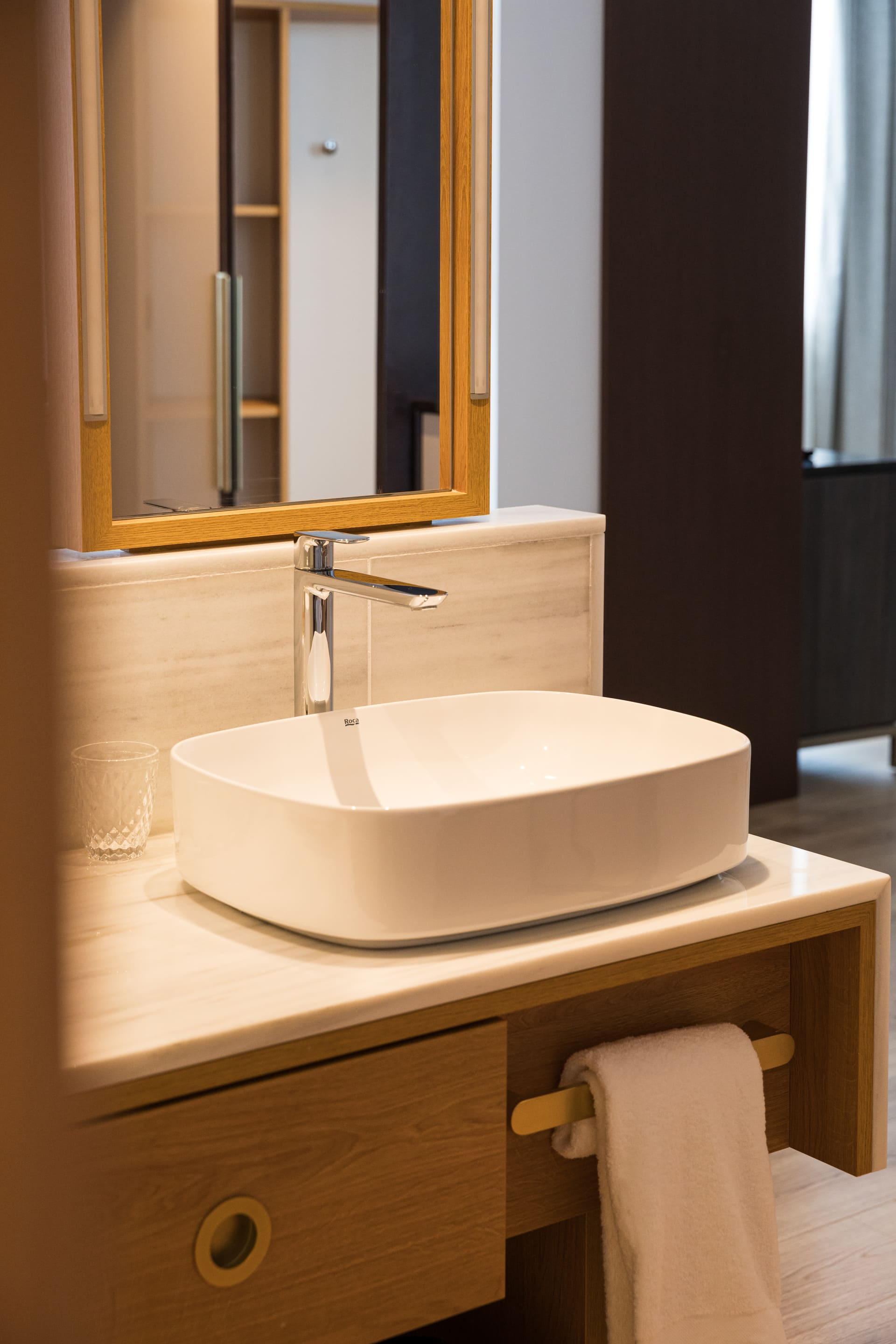 Extending this commitment to luxury and sophisticated design, the hotel's public toilets have a sleek and modern aesthetic. Featuring a long countertop with contemporary over countertop basins from the Ona collection, these spaces are both stylish and functional. The men’s area includes Mural urinals, while the women’s area features The Gap Round back-to-wall WCs.