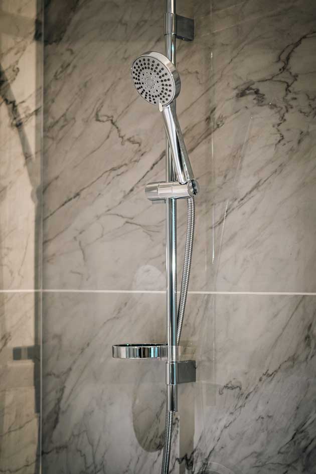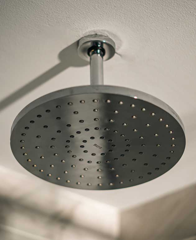 The Inspira Fineceramic® countertop basin exemplifies the considered design features throughout the residential property. Its thin, elegant shape is also durable and easy to clean. Overcountertop basins were the preferred style in the Twin Tower bathrooms, and other collections featured include the Roca Bol countertop basin, the Element-S countertop basin and the Roca Diverta semi-recessed wash basin, which fits snugly with the countertop.